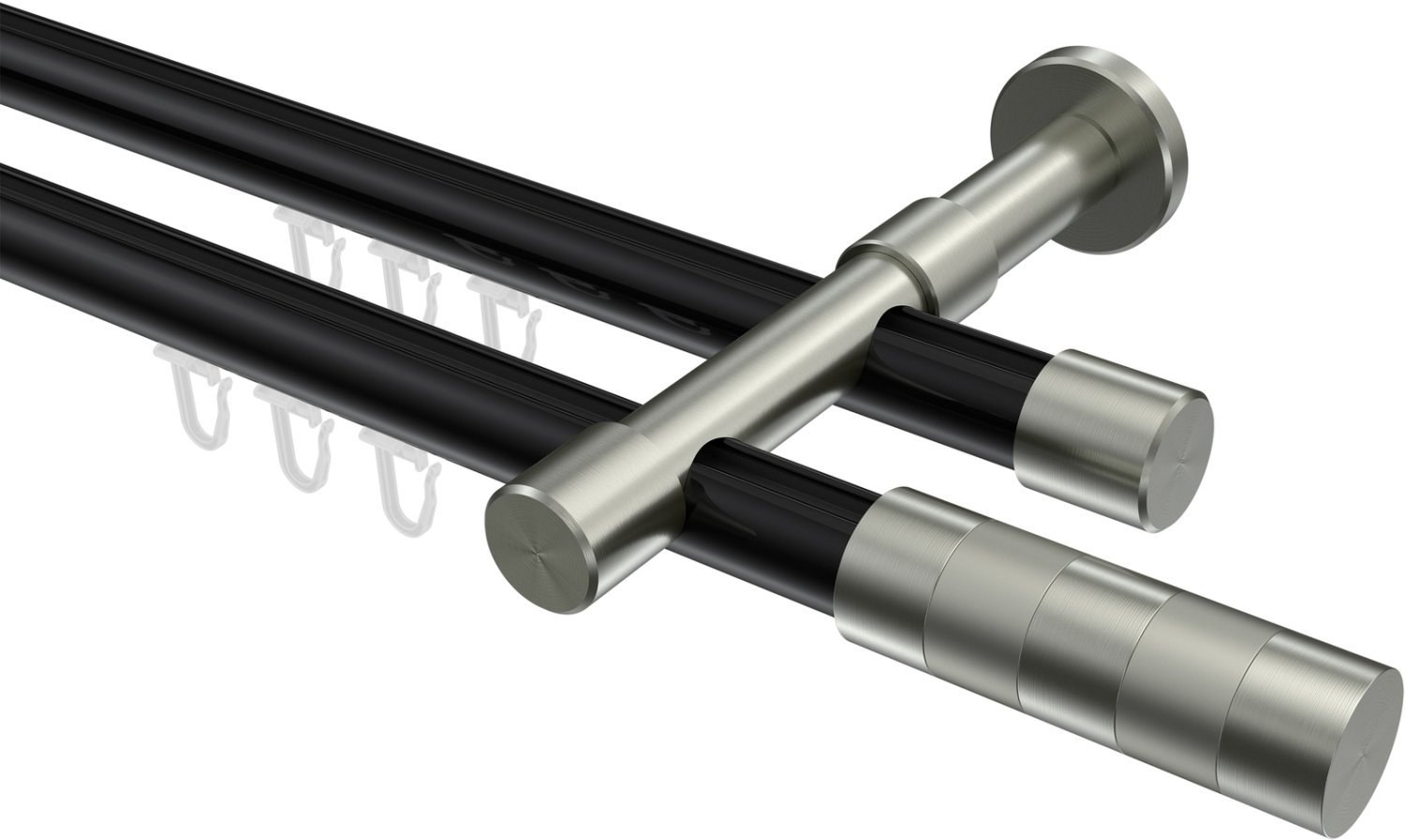 Informationen zu Innenlauf Gardinenstange Aluminium / Metall 20 mm Ø 2-läufig PRESTIGE - Mavell Schwarz / Edelstahl-Optik: