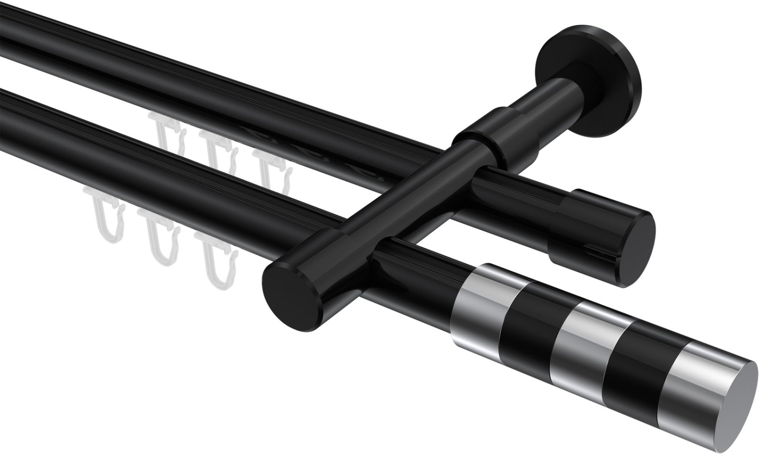 Gardinenstangen mit Innenlauf aus Aluminium / Metall in 20 mm Ø, 2-läufig, Modell PRESTIGE - Mavell Schwarz