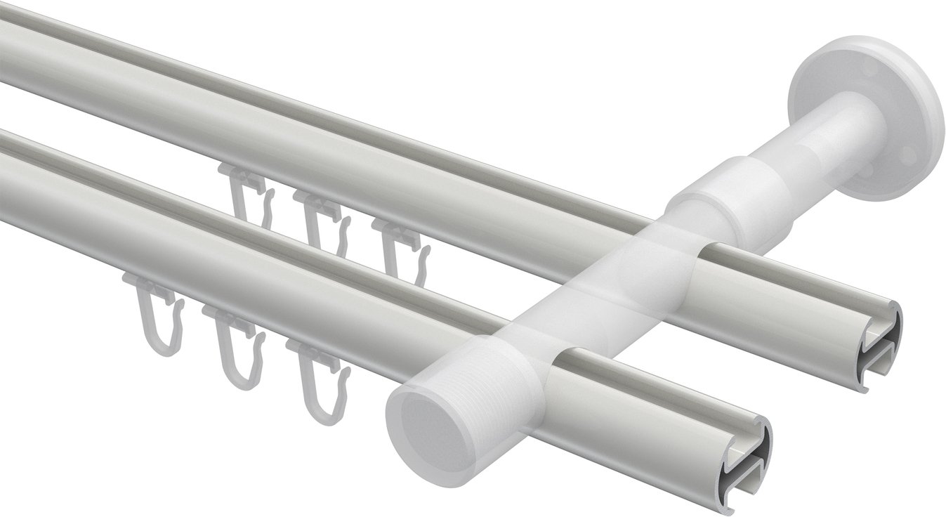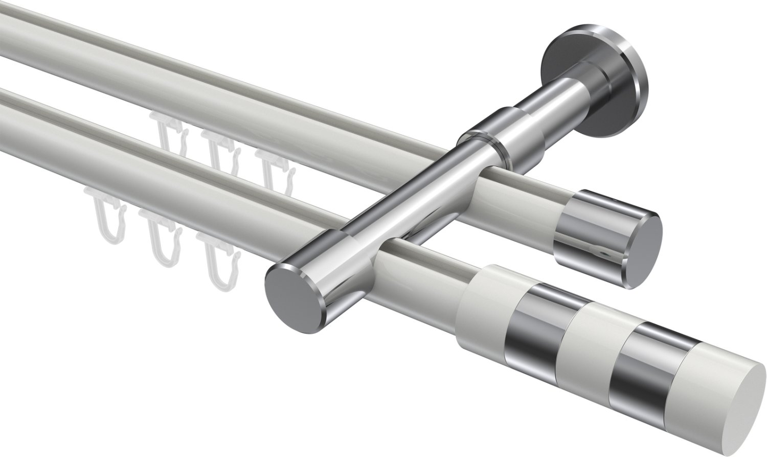 Gardinenstangen mit Innenlauf aus Aluminium / Metall in 20 mm Ø, 2-läufig, Modell PRESTIGE - Mavell Weiß / Chrom