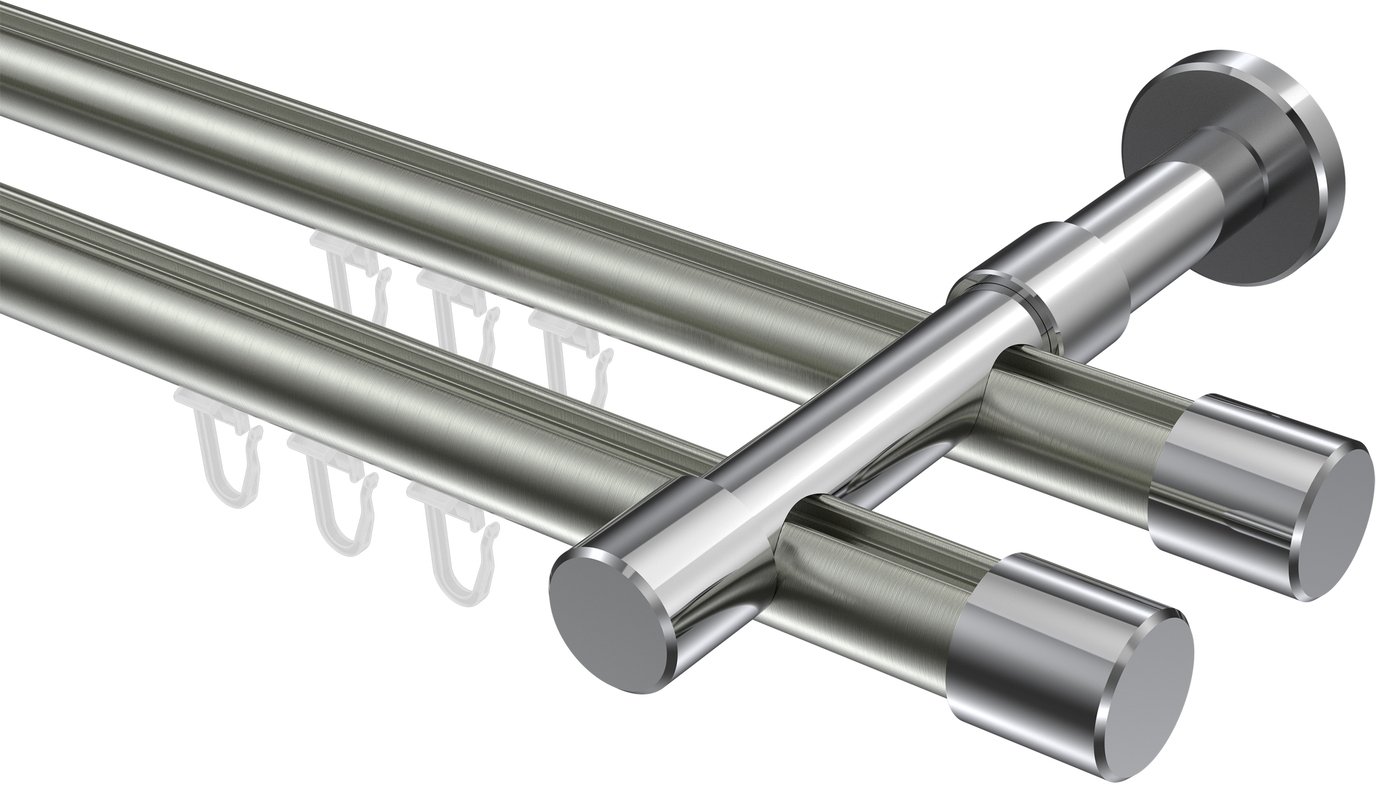 Gardinenstangen mit Innenlauf aus Aluminium / Metall in 20 mm Ø, 2-läufig, Modell PRESTIGE - Santo Edelstahl-Optik / Chrom