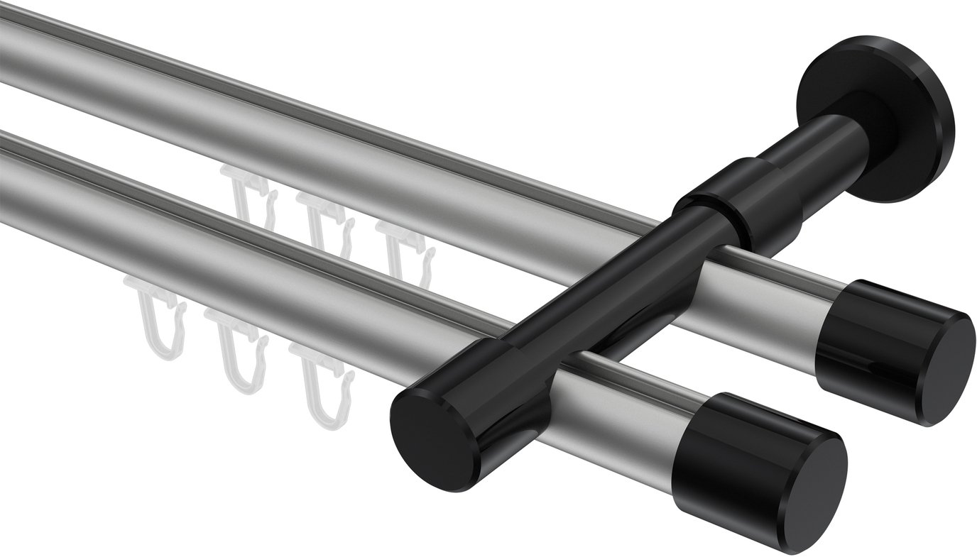 Gardinenstangen mit Innenlauf aus Aluminium / Metall in 20 mm Ø, 2-läufig, Modell PRESTIGE - Santo Silbergrau / Schwarz