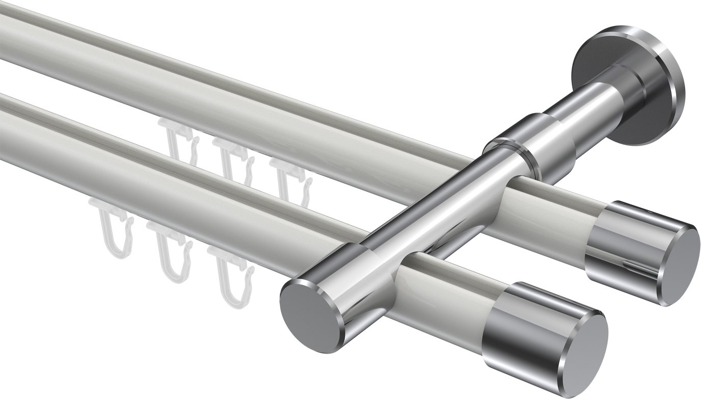 Gardinenstangen mit Innenlauf aus Aluminium / Metall in 20 mm Ø, 2-läufig, Modell PRESTIGE - Santo Weiß / Chrom