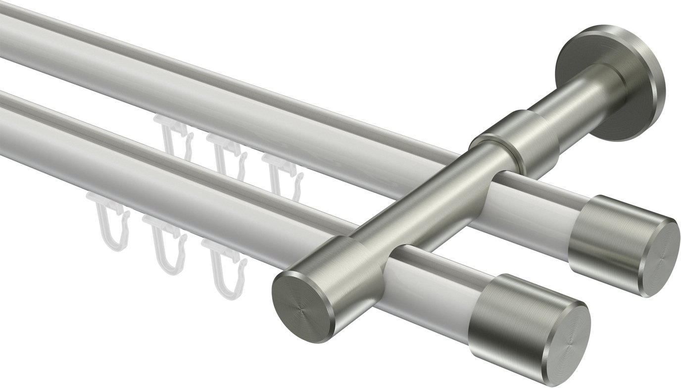 Informationen zu Innenlauf Gardinenstange Aluminium / Metall 20 mm Ø 2-läufig PRESTIGE - Santo Weiß / Edelstahl-Optik: