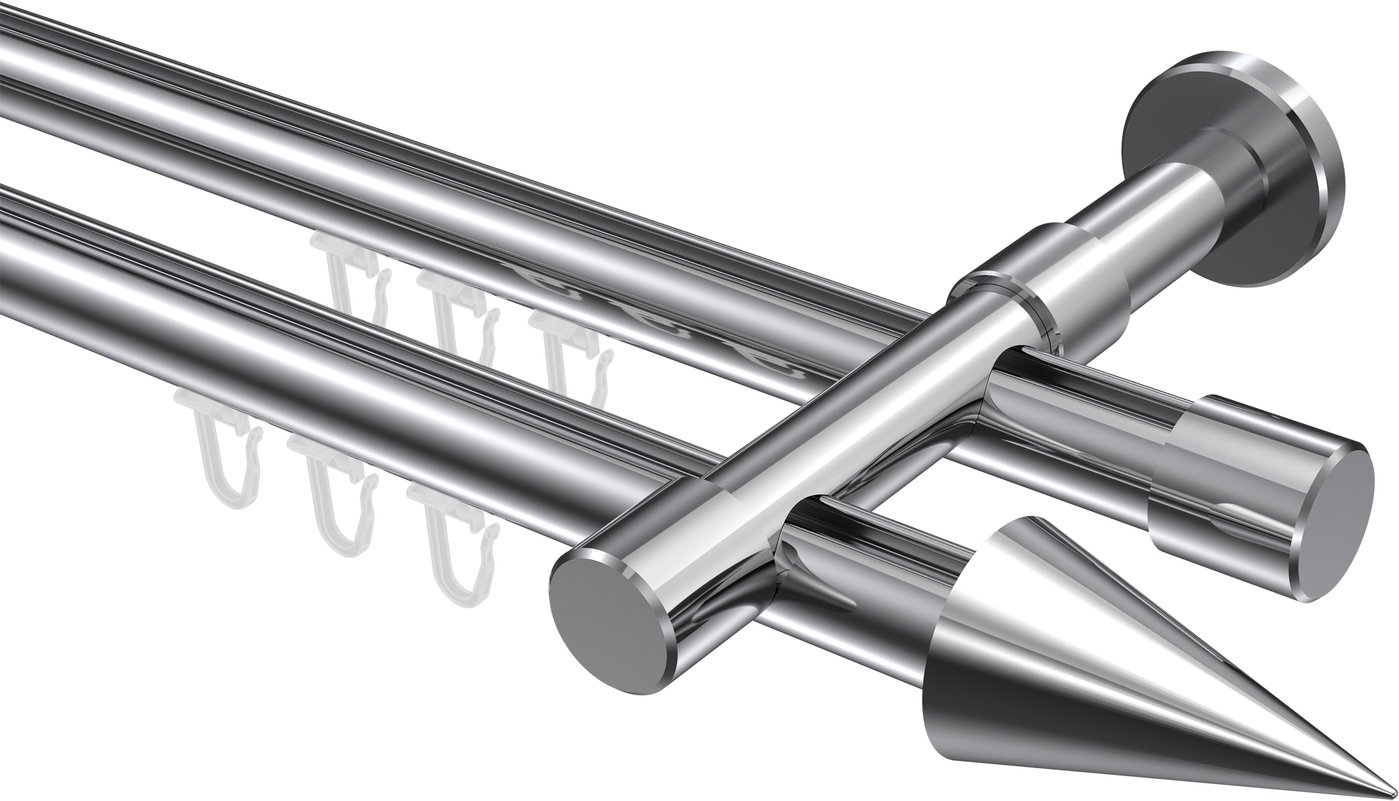 Gardinenstangen mit Innenlauf aus Aluminium / Metall in 20 mm Ø, 2-läufig, Modell PRESTIGE - Savio Chrom