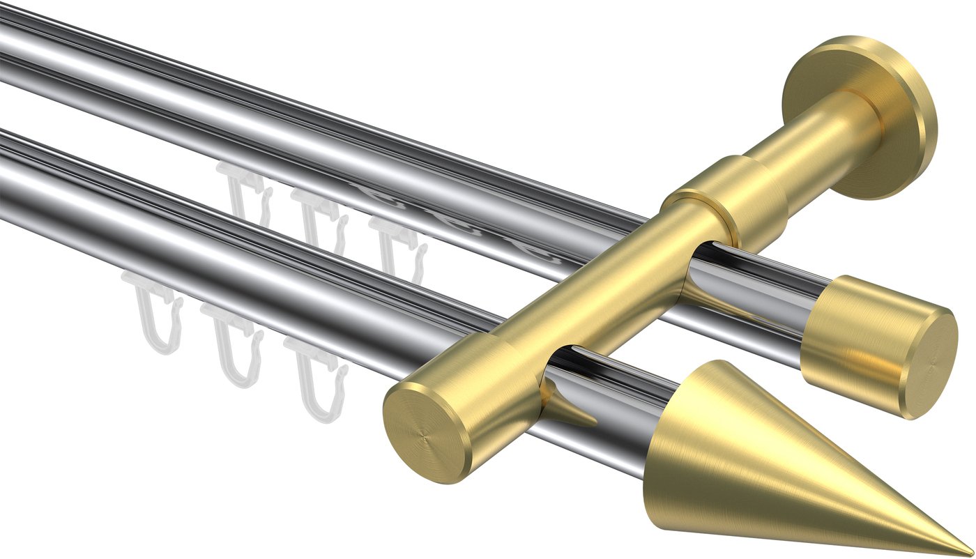 Informationen zu Innenlauf Gardinenstange Aluminium / Metall 20 mm Ø 2-läufig PRESTIGE - Savio Chrom / Messing-Optik: