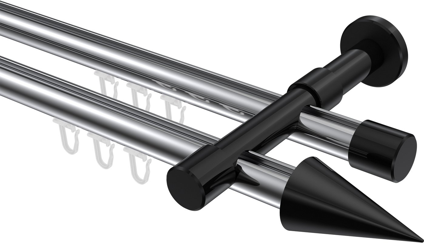 Informationen zu Innenlauf Gardinenstange Aluminium / Metall 20 mm Ø 2-läufig PRESTIGE - Savio Chrom / Schwarz: