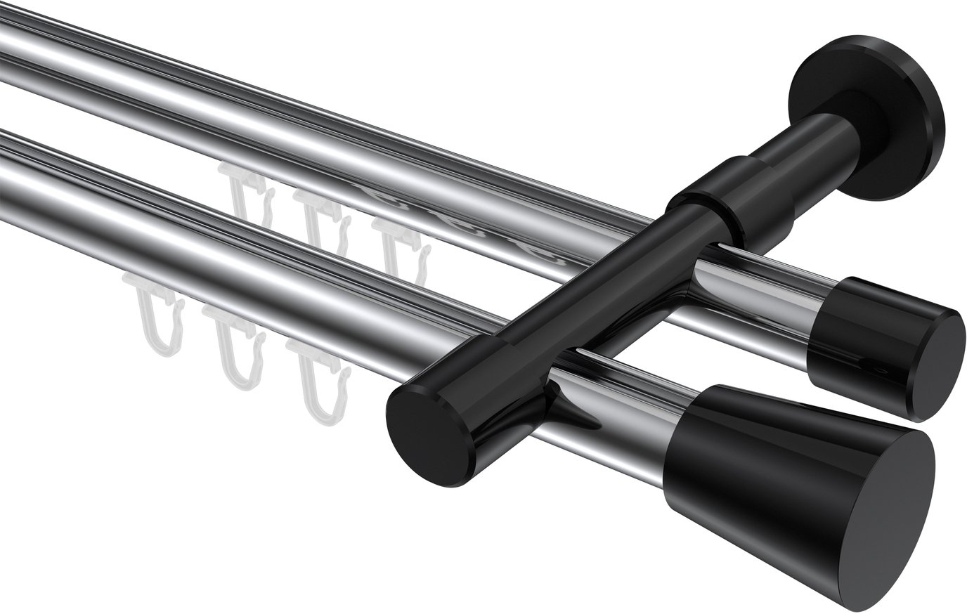 Gardinenstangen mit Innenlauf aus Aluminium / Metall in 20 mm Ø, 2-läufig, Modell PRESTIGE - Sitra Chrom / Schwarz