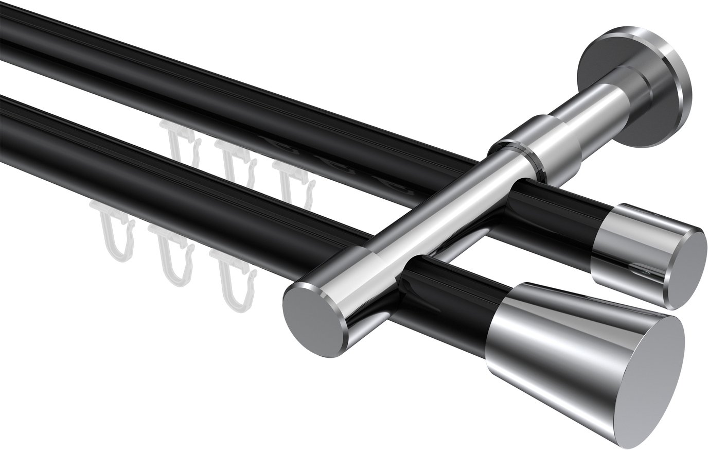 Informationen zu Innenlauf Gardinenstange Aluminium / Metall 20 mm Ø 2-läufig PRESTIGE - Sitra Schwarz / Chrom: