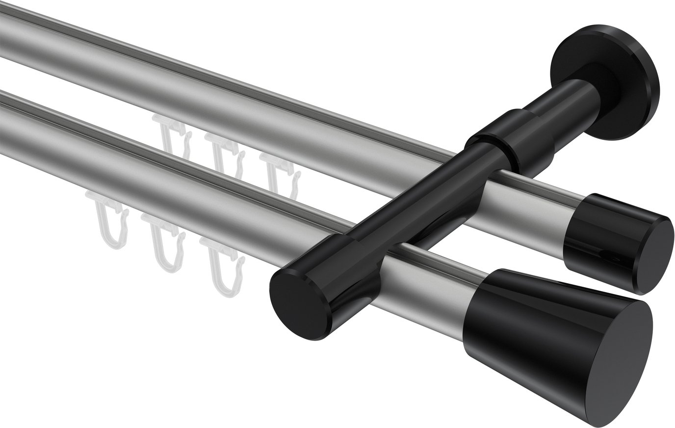 Informationen zu Innenlauf Gardinenstange Aluminium / Metall 20 mm Ø 2-läufig PRESTIGE - Sitra Silbergrau / Schwarz: