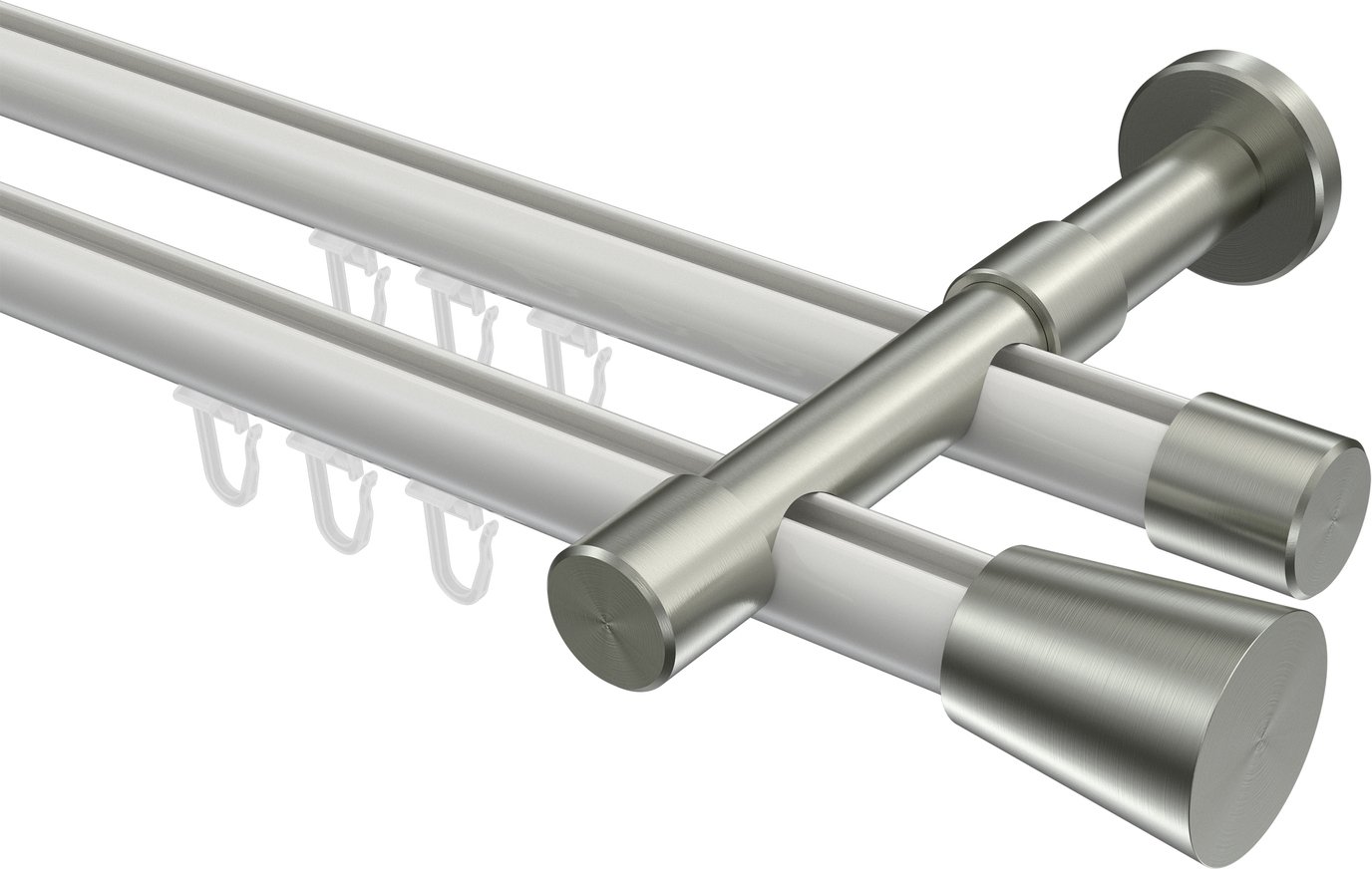 Informationen zu Innenlauf Gardinenstange Aluminium / Metall 20 mm Ø 2-läufig PRESTIGE - Sitra Weiß / Edelstahl-Optik: