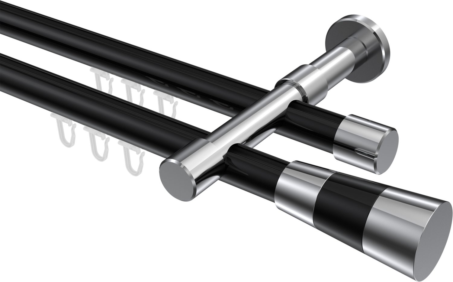 Gardinenstangen mit Innenlauf aus Aluminium / Metall in 20 mm Ø, 2-läufig, Modell PRESTIGE - Tanara Schwarz / Chrom