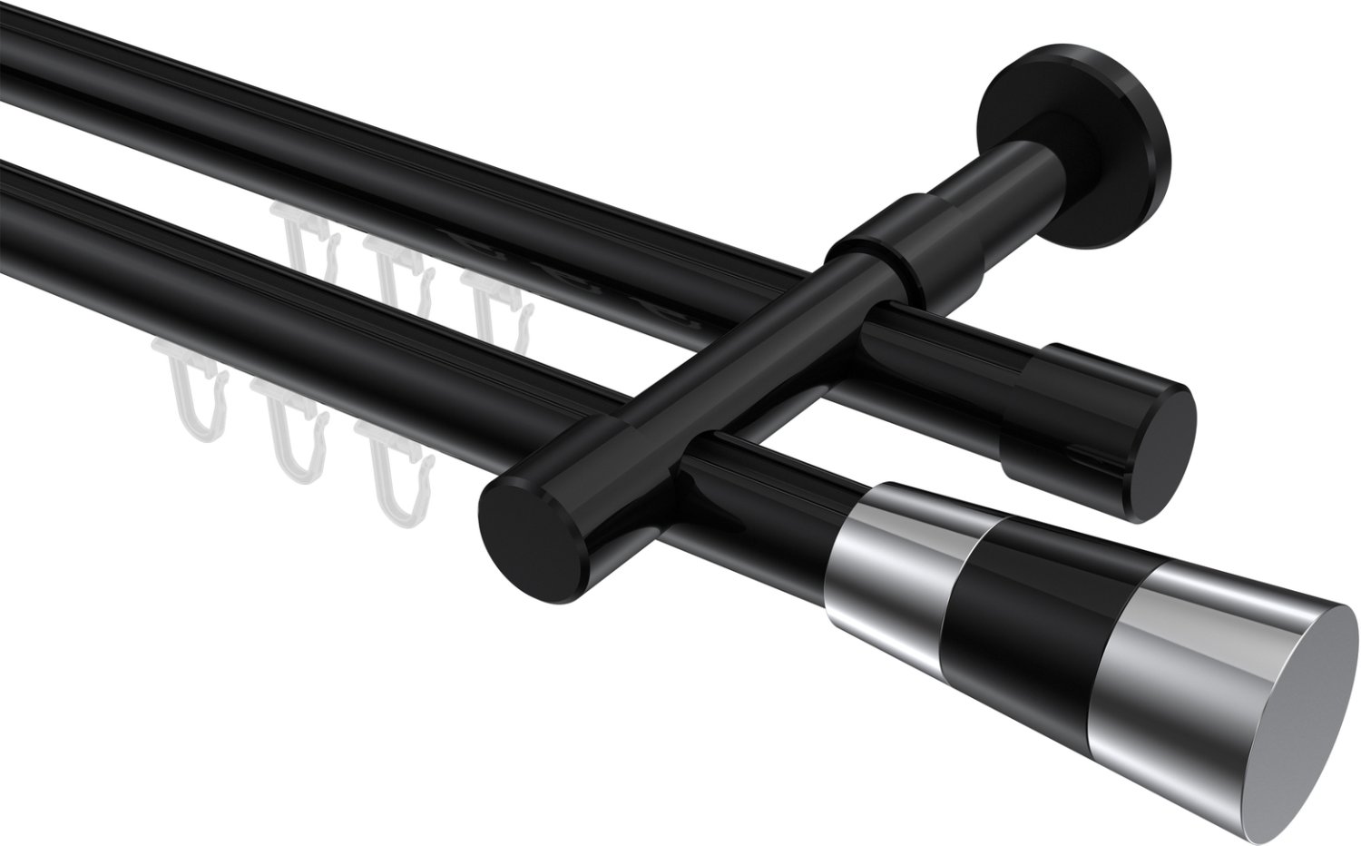 Gardinenstangen mit Innenlauf aus Aluminium / Metall in 20 mm Ø, 2-läufig, Modell PRESTIGE - Tanara Schwarz