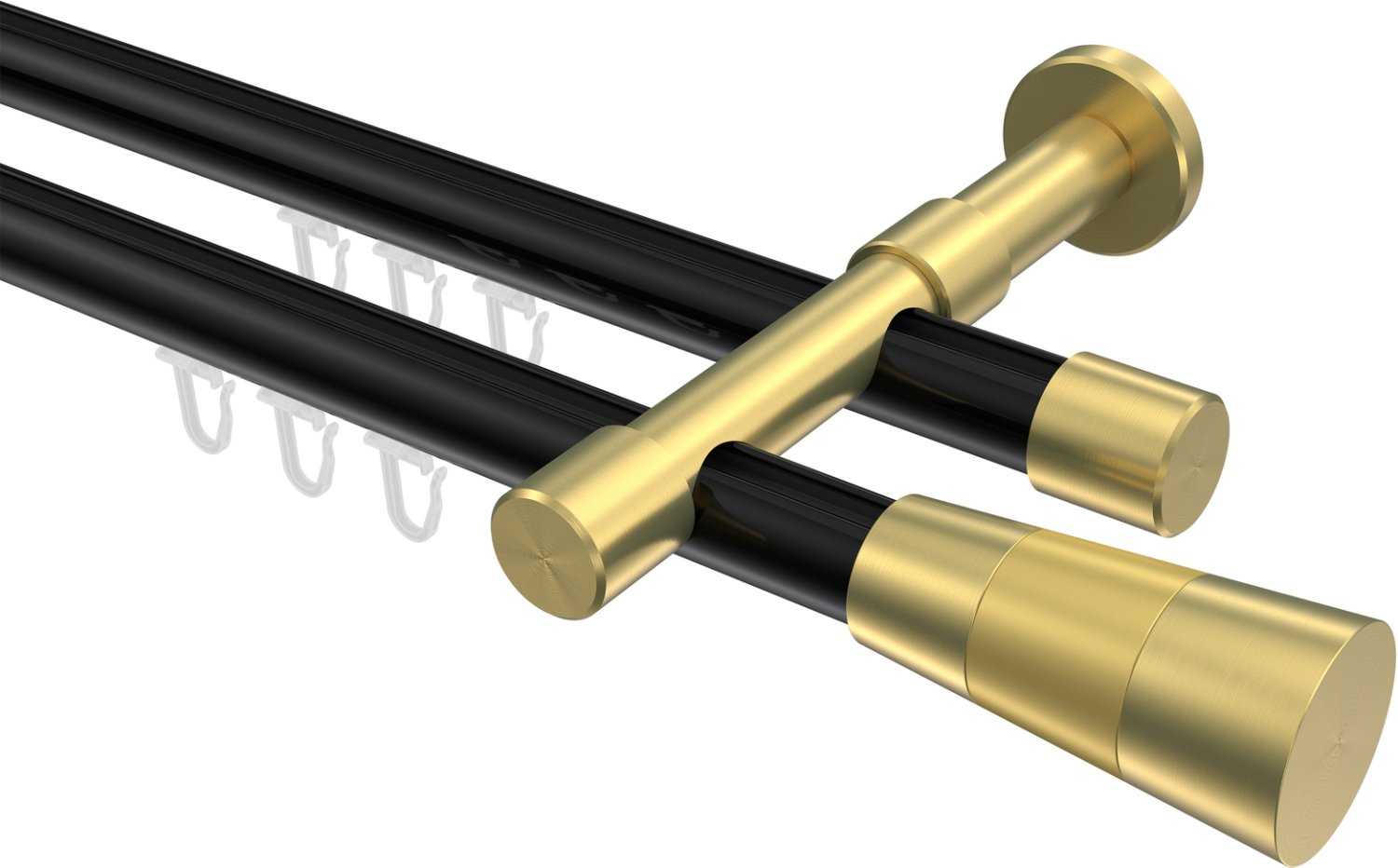 Gardinenstangen mit Innenlauf aus Aluminium / Metall in 20 mm Ø, 2-läufig, Modell PRESTIGE - Tanara Schwarz / Messing-Optik