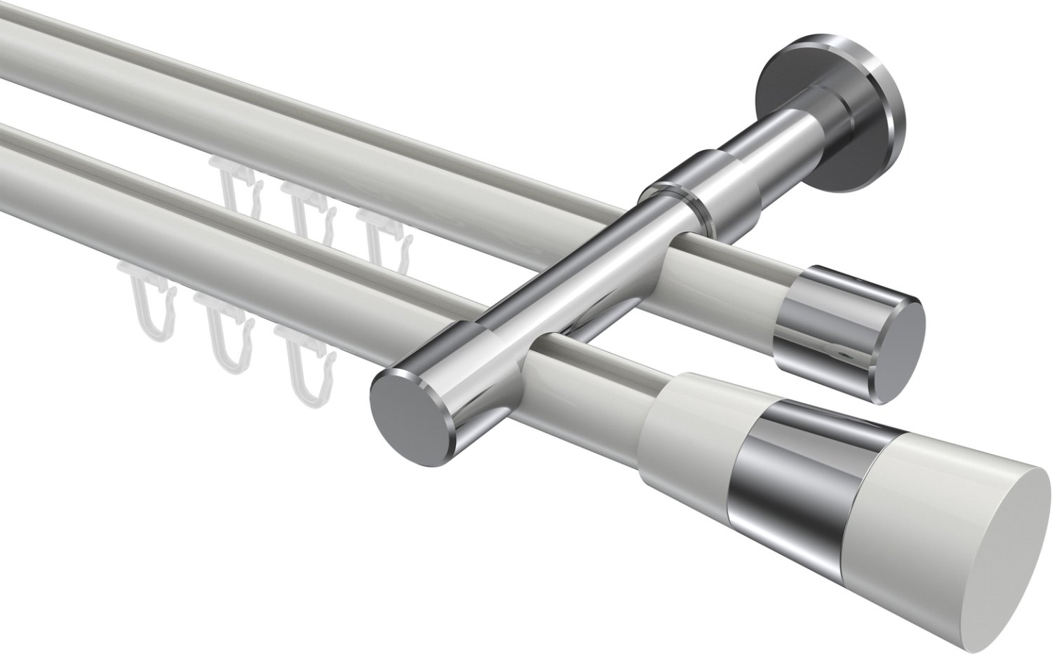 Gardinenstangen mit Innenlauf aus Aluminium / Metall in 20 mm Ø, 2-läufig, Modell PRESTIGE - Tanara Weiß / Chrom