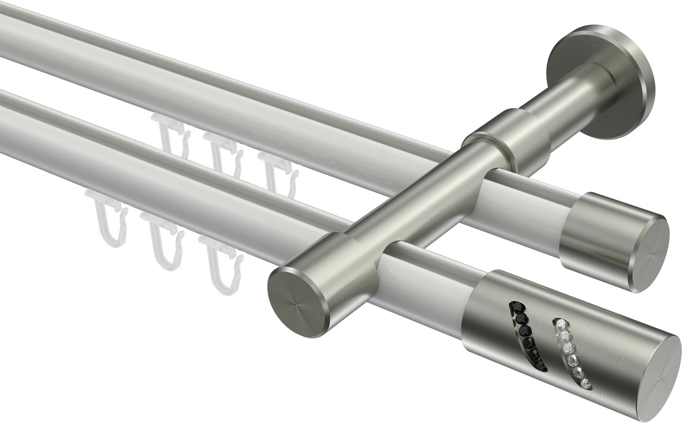 Informationen zu Innenlauf Gardinenstange Aluminium / Metall 20 mm Ø 2-läufig PRESTIGE - Zoena Weiß / Edelstahl-Optik: