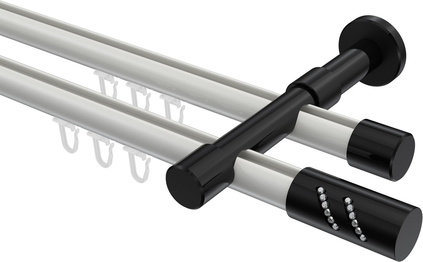 Informationen zu Innenlauf Gardinenstange Aluminium / Metall 20 mm Ø 2-läufig PRESTIGE - Zoena Weiß / Schwarz: