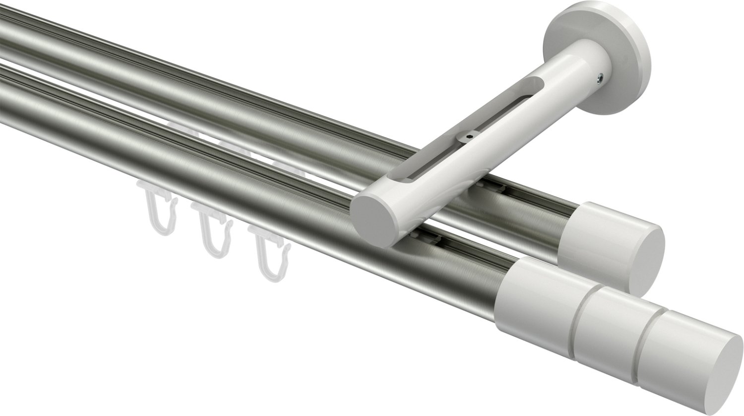 Gardinenstangen mit Innenlauf aus Aluminium / Metall in 20 mm Ø, 2-läufig, Modell SITENO - Elanto Edelstahl-Optik / Weiß