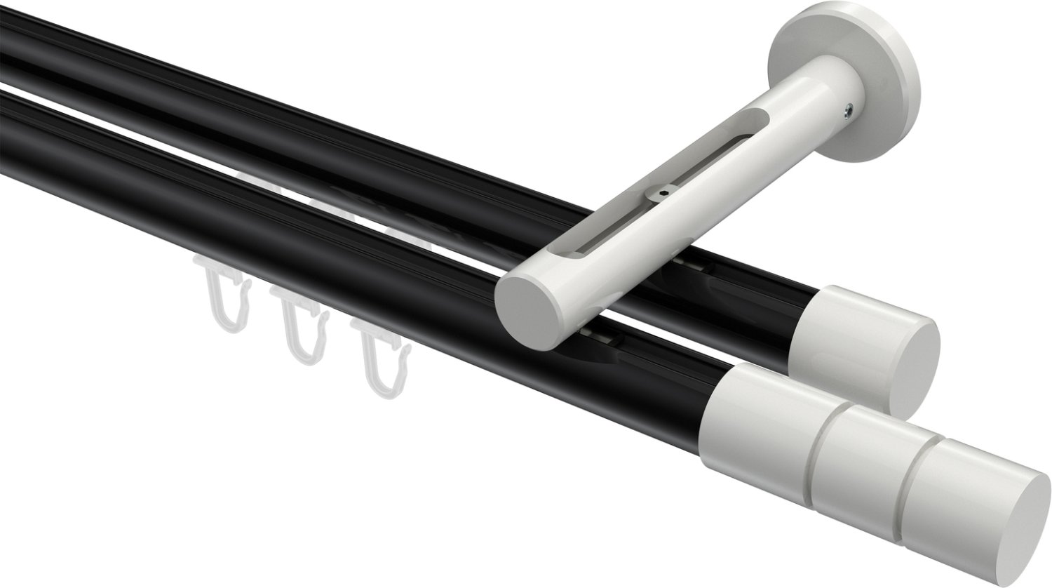 Gardinenstangen mit Innenlauf aus Aluminium / Metall in 20 mm Ø, 2-läufig, Modell SITENO - Elanto Schwarz / Weiß