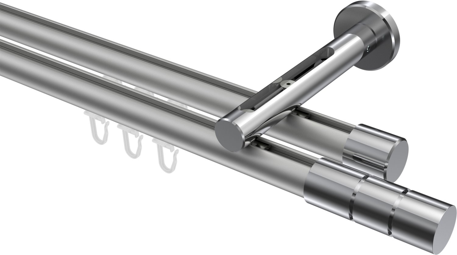 Gardinenstangen mit Innenlauf aus Aluminium / Metall in 20 mm Ø, 2-läufig, Modell SITENO - Elanto Silbergrau / Chrom