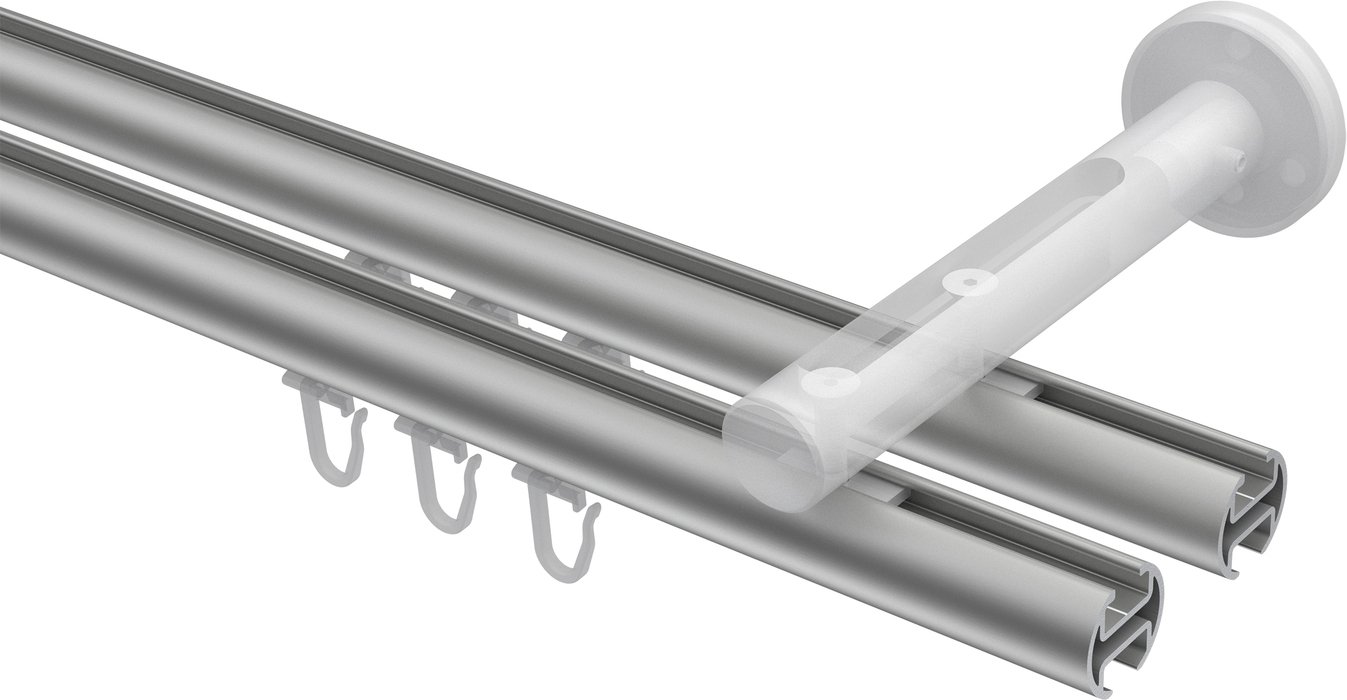 Gardinenstangen mit Innenlauf aus Aluminium / Metall in 20 mm Ø, 2-läufig, Modell SITENO - Elanto Silbergrau / Messing-Optik