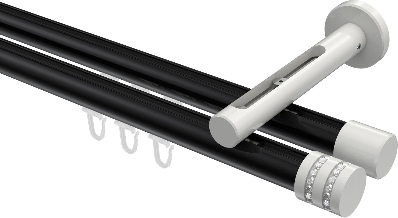 Gardinenstangen mit Innenlauf aus Aluminium / Metall in 20 mm Ø, 2-läufig, Modell SITENO - Estana Schwarz / Weiß
