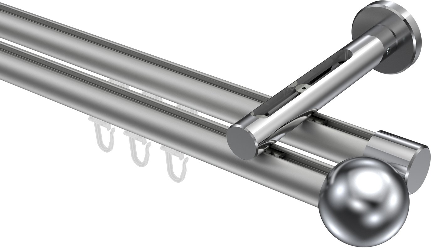 Informationen zu Innenlauf Gardinenstange Aluminium / Metall 20 mm Ø 2-läufig SITENO - Luino Silbergrau / Chrom: