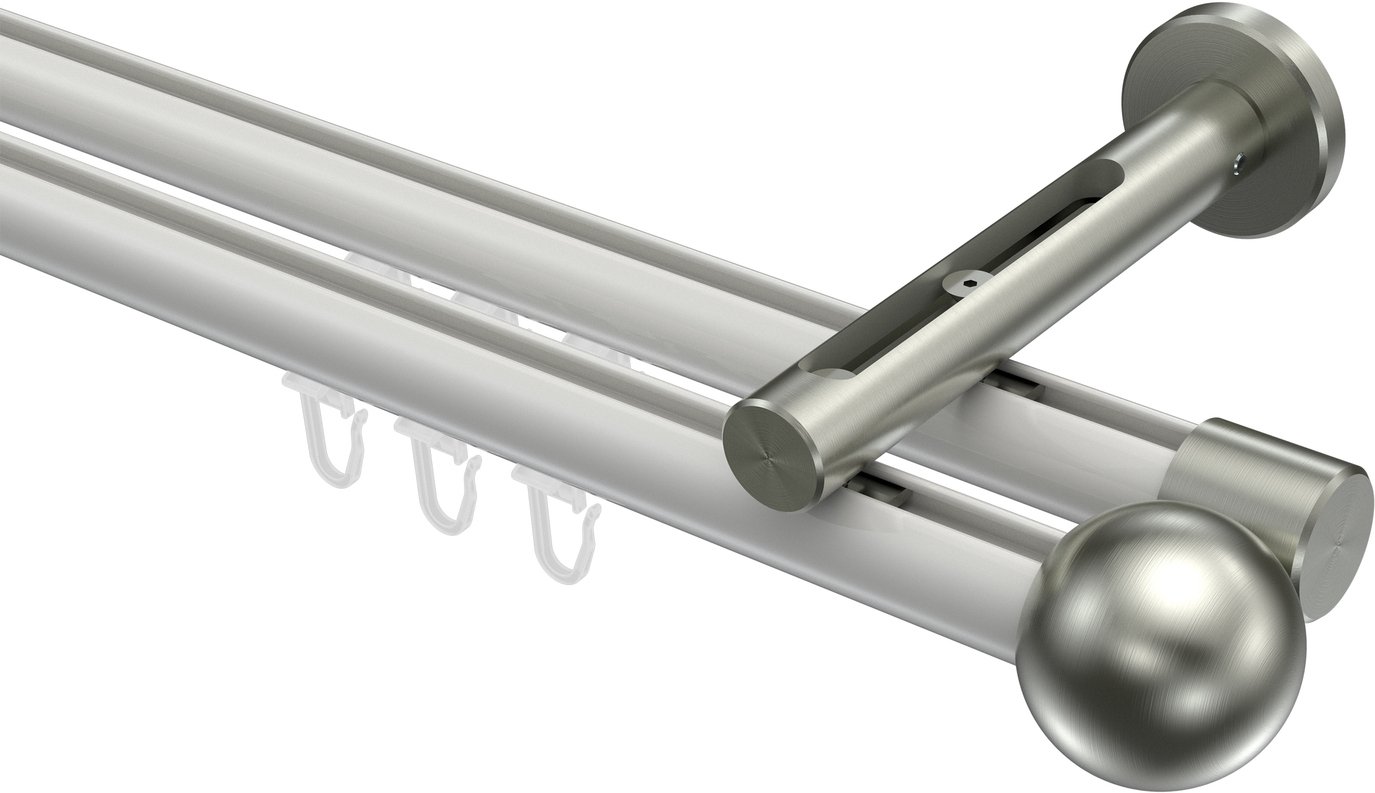 Informationen zu Innenlauf Gardinenstange Aluminium / Metall 20 mm Ø 2-läufig SITENO - Luino Weiß / Edelstahl-Optik: