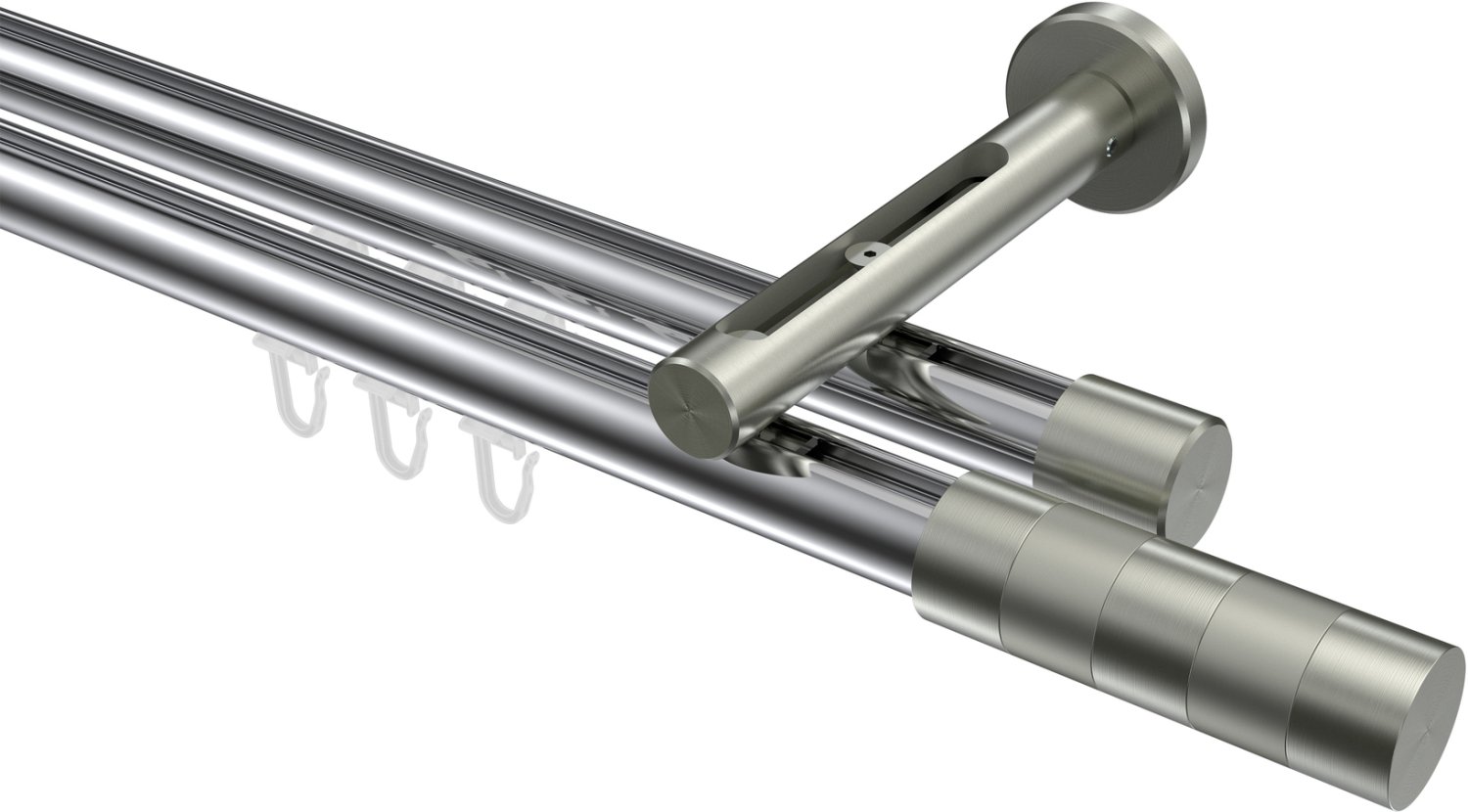 Gardinenstangen mit Innenlauf aus Aluminium / Metall in 20 mm Ø, 2-läufig, Modell SITENO - Mavell Chrom / Edelstahl-Optik