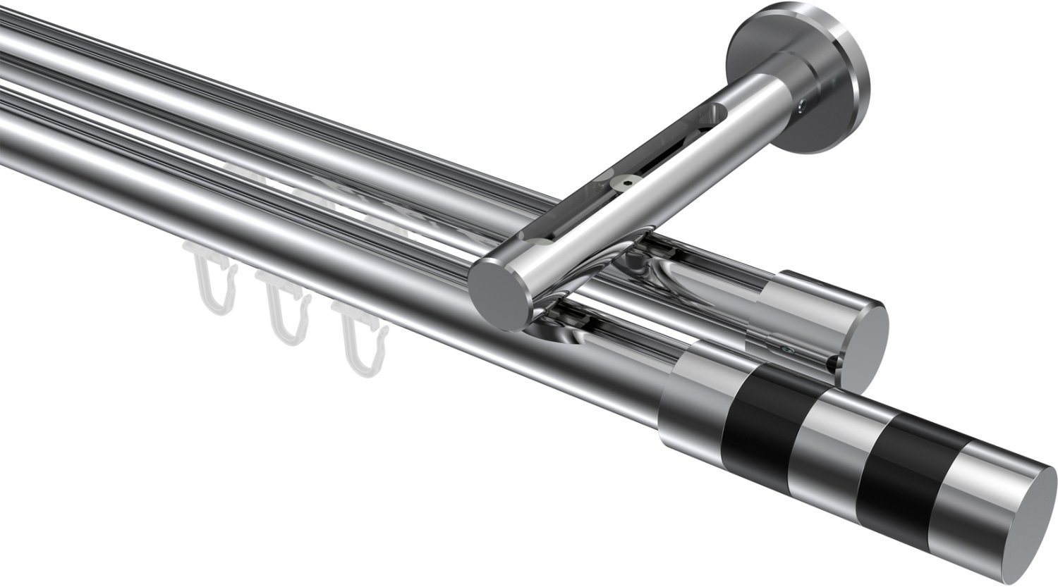 Gardinenstangen mit Innenlauf aus Aluminium / Metall in 20 mm Ø, 2-läufig, Modell SITENO - Mavell Chrom