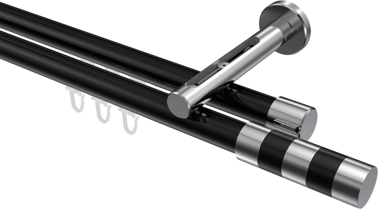 Gardinenstangen mit Innenlauf aus Aluminium / Metall in 20 mm Ø, 2-läufig, Modell SITENO - Mavell Schwarz / Chrom