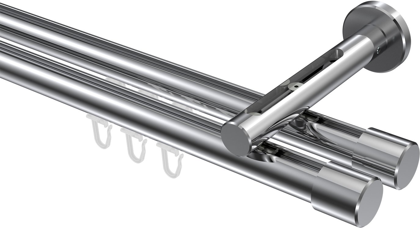 Gardinenstangen mit Innenlauf aus Aluminium / Metall in 20 mm Ø, 2-läufig, Modell SITENO - Santo Chrom