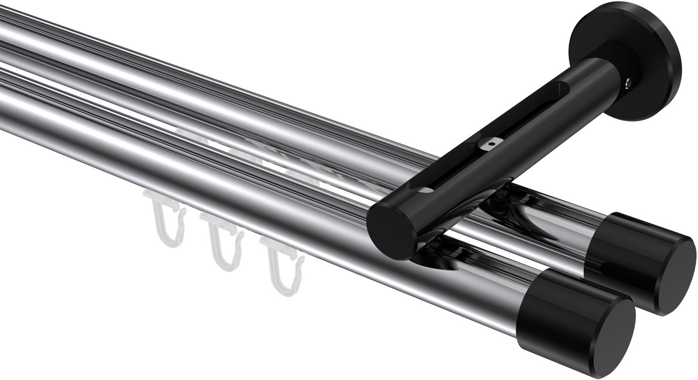 Gardinenstangen mit Innenlauf aus Aluminium / Metall in 20 mm Ø, 2-läufig, Modell SITENO - Santo Chrom / Schwarz