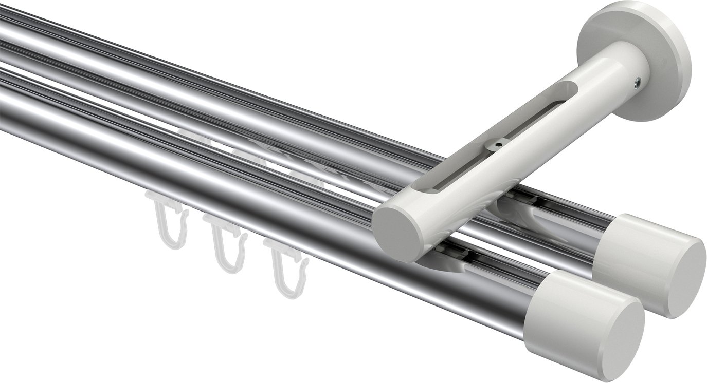 Gardinenstangen mit Innenlauf aus Aluminium / Metall in 20 mm Ø, 2-läufig, Modell SITENO - Santo Chrom / Weiß