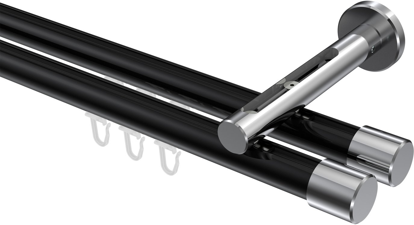 Gardinenstangen mit Innenlauf aus Aluminium / Metall in 20 mm Ø, 2-läufig, Modell SITENO - Santo Schwarz / Chrom