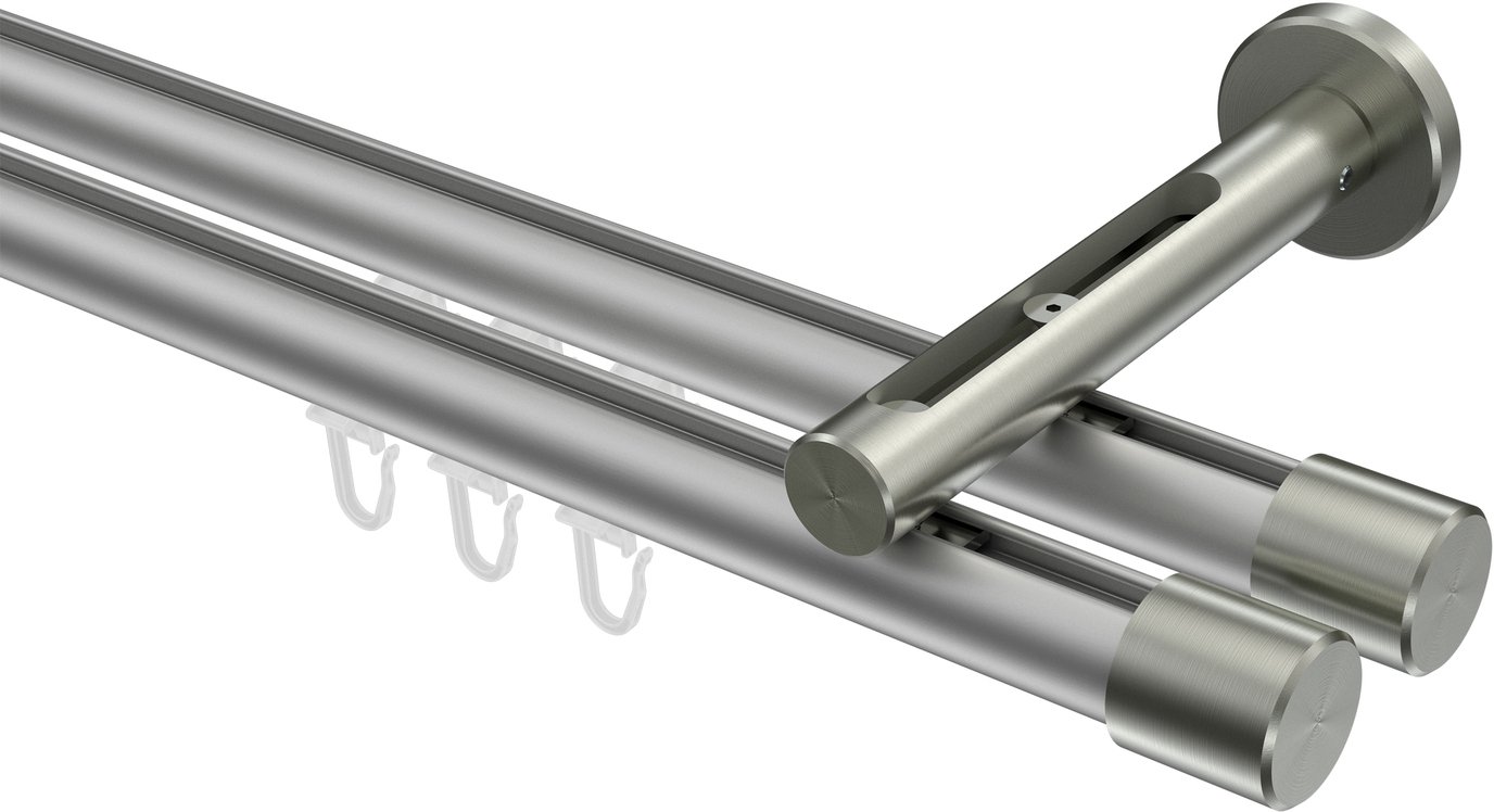 Informationen zu Innenlauf Gardinenstange Aluminium / Metall 20 mm Ø 2-läufig SITENO - Santo Silbergrau / Edelstahl-Optik: