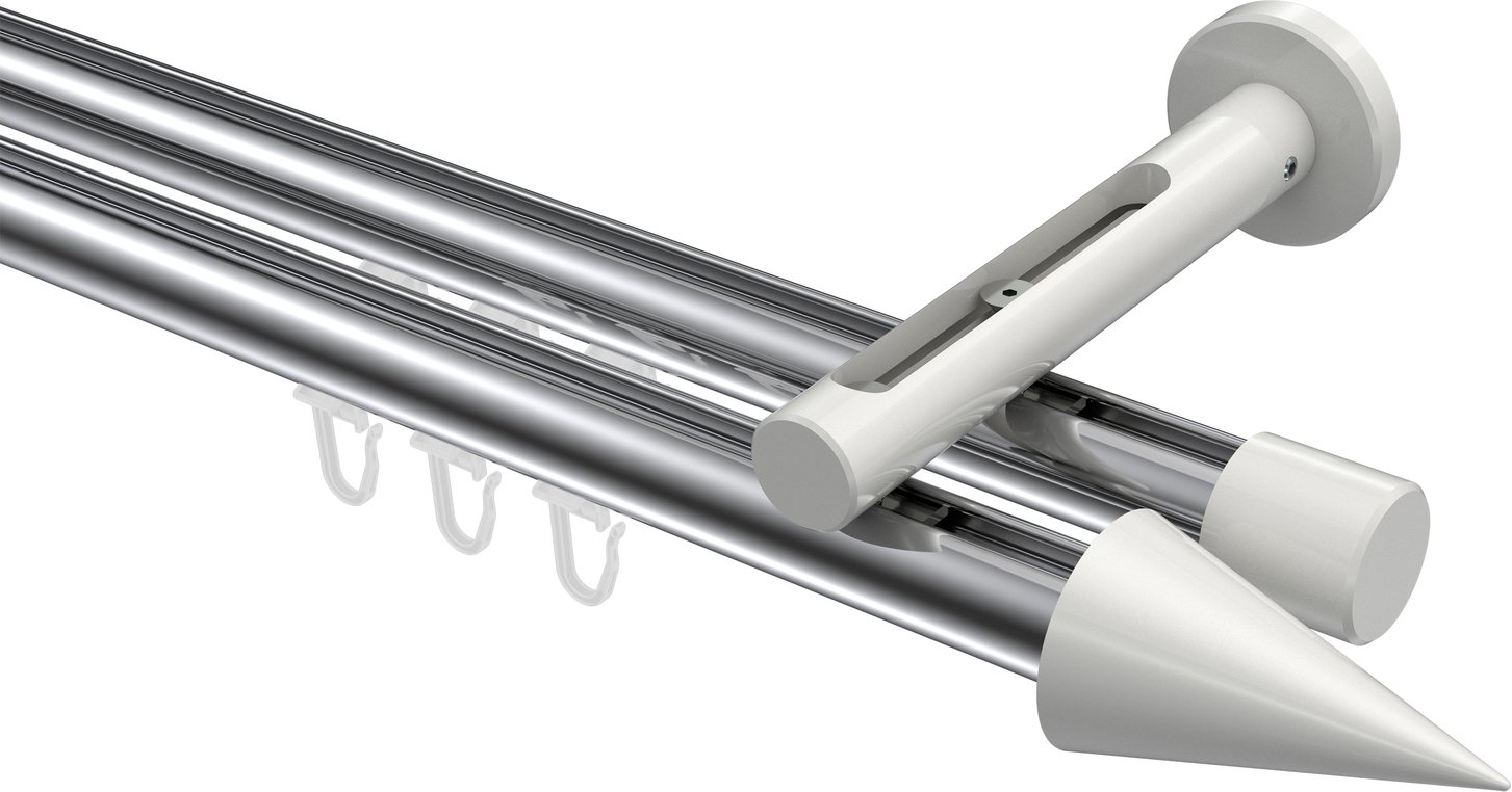 Gardinenstangen mit Innenlauf aus Aluminium / Metall in 20 mm Ø, 2-läufig, Modell SITENO - Savio Chrom / Weiß
