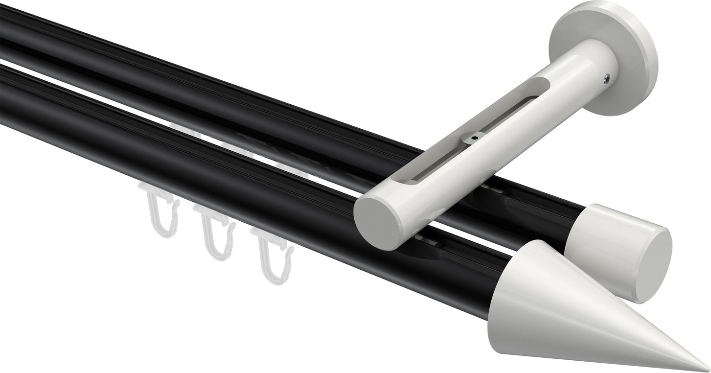 Gardinenstangen mit Innenlauf aus Aluminium / Metall in 20 mm Ø, 2-läufig, Modell SITENO - Savio Schwarz / Weiß