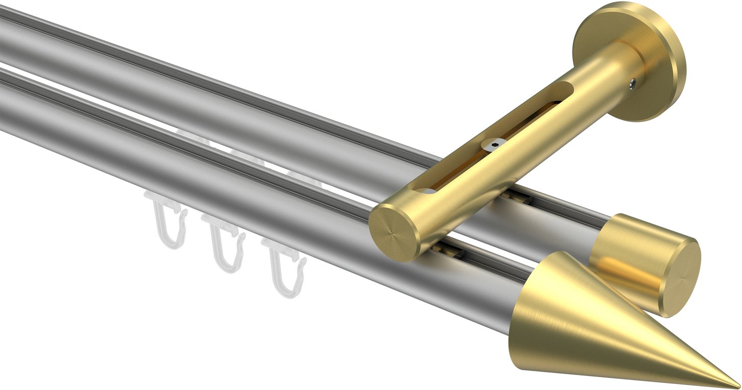 Gardinenstangen mit Innenlauf aus Aluminium / Metall in 20 mm Ø, 2-läufig, Modell SITENO - Savio Silbergrau / Messing-Optik