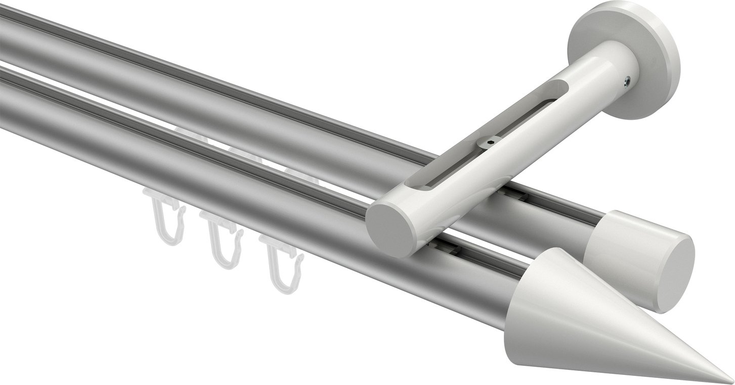 Gardinenstangen mit Innenlauf aus Aluminium / Metall in 20 mm Ø, 2-läufig, Modell SITENO - Savio Silbergrau / Weiß
