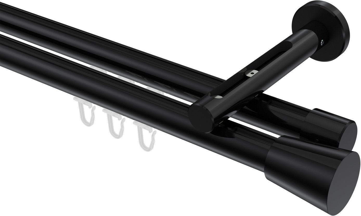 Gardinenstangen mit Innenlauf aus Aluminium / Metall in 20 mm Ø, 2-läufig, Modell SITENO - Sitra Schwarz