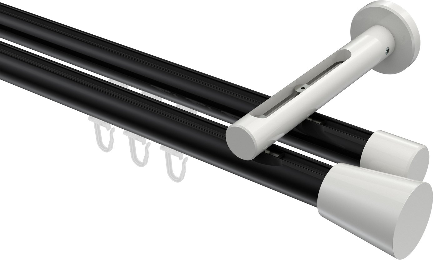 Gardinenstangen mit Innenlauf aus Aluminium / Metall in 20 mm Ø, 2-läufig, Modell SITENO - Sitra Schwarz / Weiß