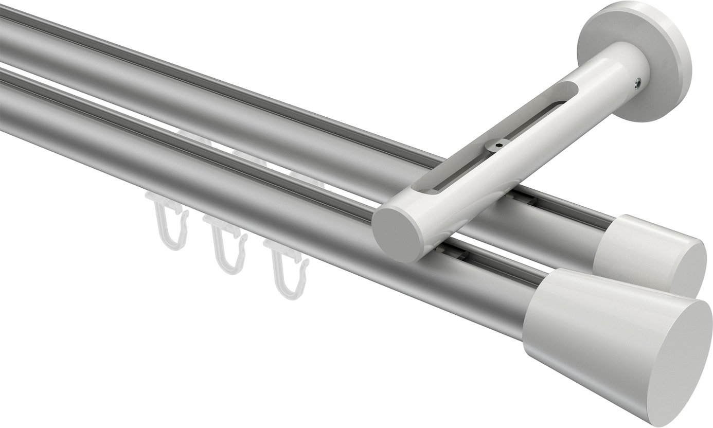 Gardinenstangen mit Innenlauf aus Aluminium / Metall in 20 mm Ø, 2-läufig, Modell SITENO - Sitra Silbergrau / Weiß