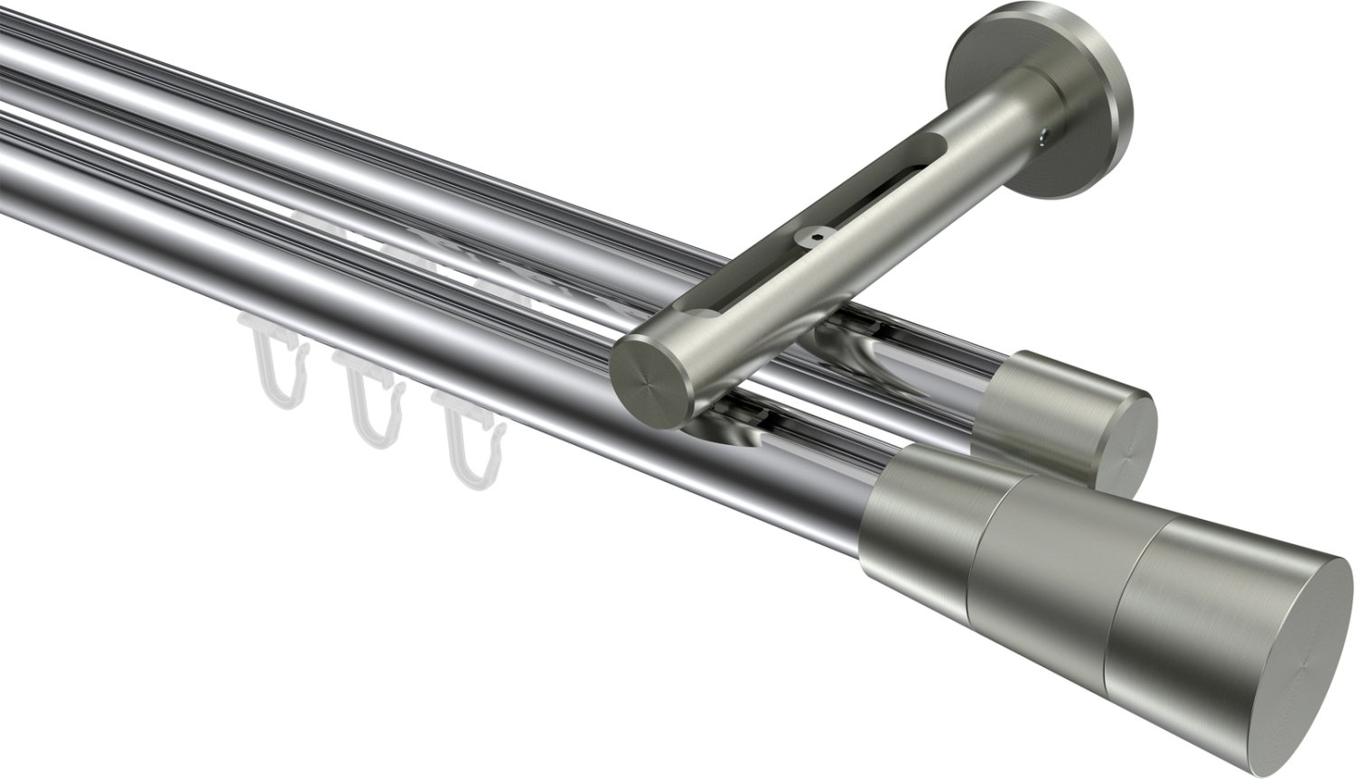 Gardinenstangen mit Innenlauf aus Aluminium / Metall in 20 mm Ø, 2-läufig, Modell SITENO - Tanara Chrom / Edelstahl-Optik