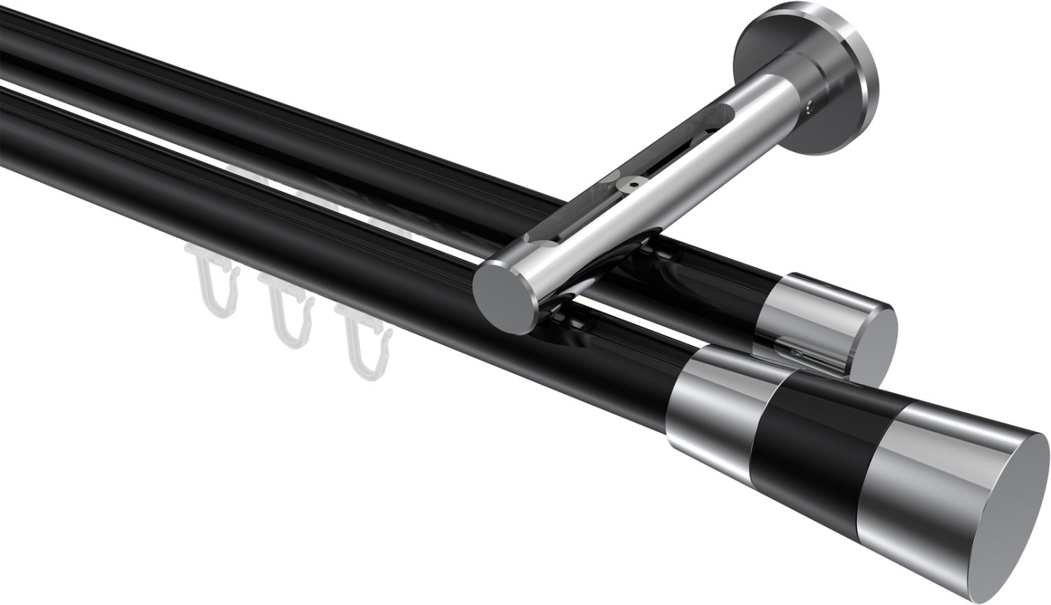 Gardinenstangen mit Innenlauf aus Aluminium / Metall in 20 mm Ø, 2-läufig, Modell SITENO - Tanara Schwarz / Chrom