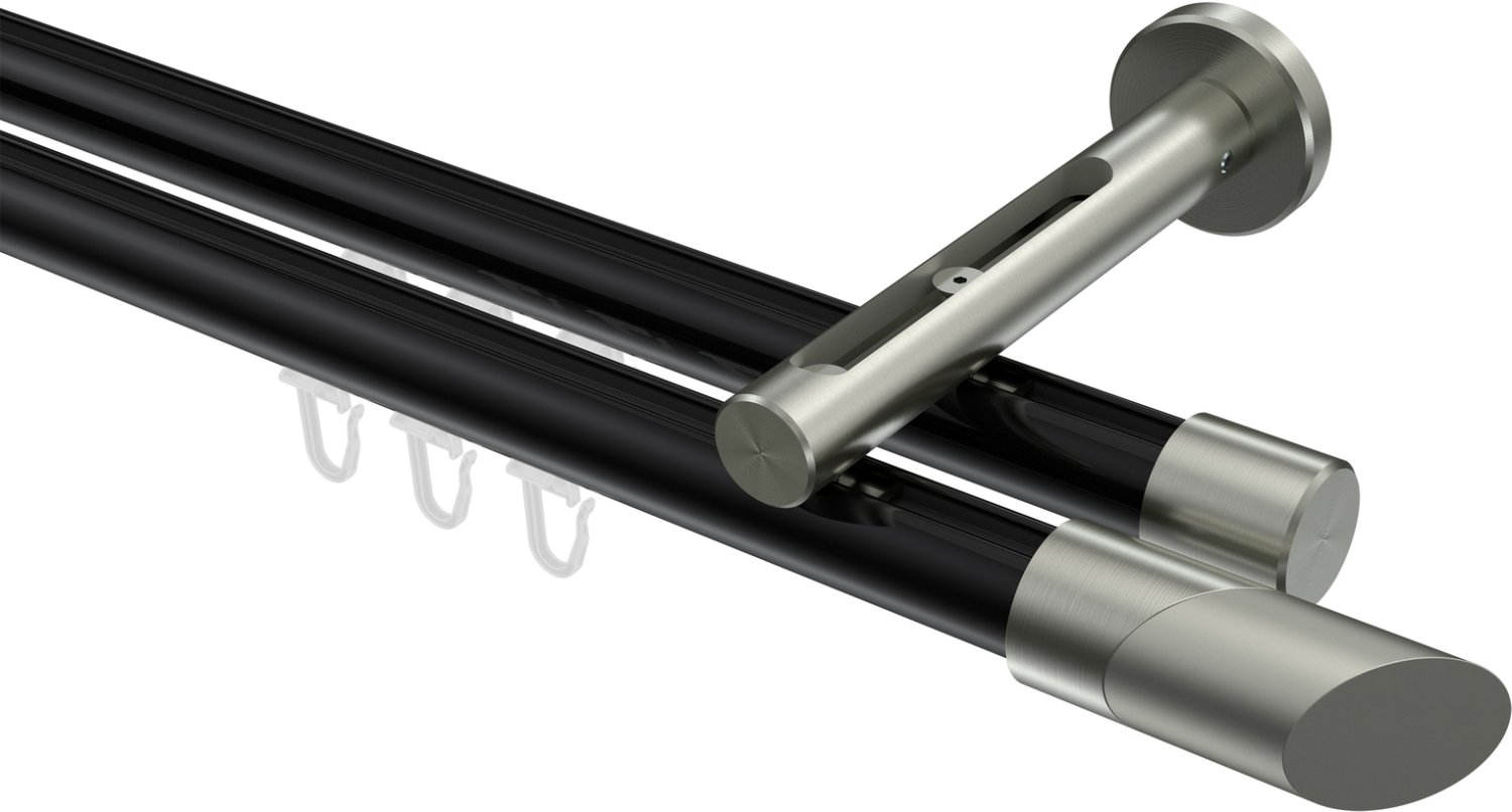 Gardinenstangen mit Innenlauf aus Aluminium / Metall in 20 mm Ø, 2-läufig, Modell SITENO - Verano Schwarz / Edelstahl-Optik