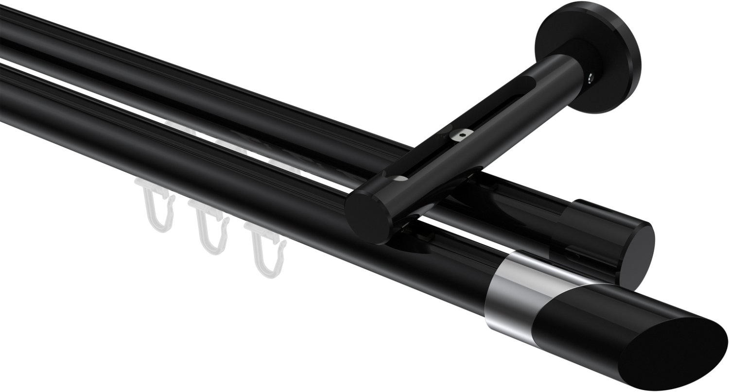 Gardinenstangen mit Innenlauf aus Aluminium / Metall in 20 mm Ø, 2-läufig, Modell SITENO - Verano Schwarz