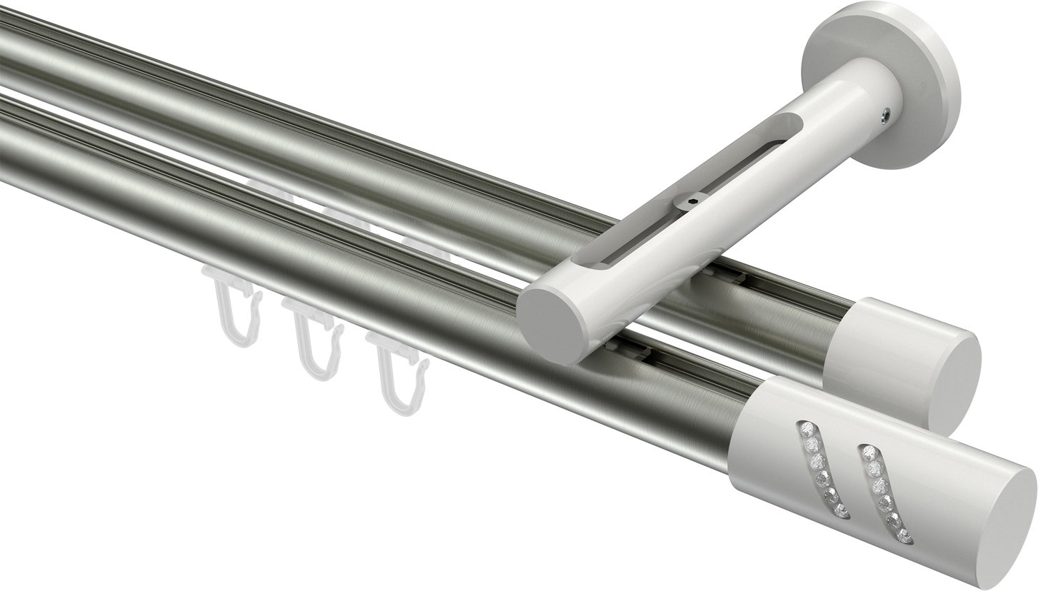 Gardinenstangen mit Innenlauf aus Aluminium / Metall in 20 mm Ø, 2-läufig, Modell SITENO - Zoena Edelstahl-Optik / Weiß
