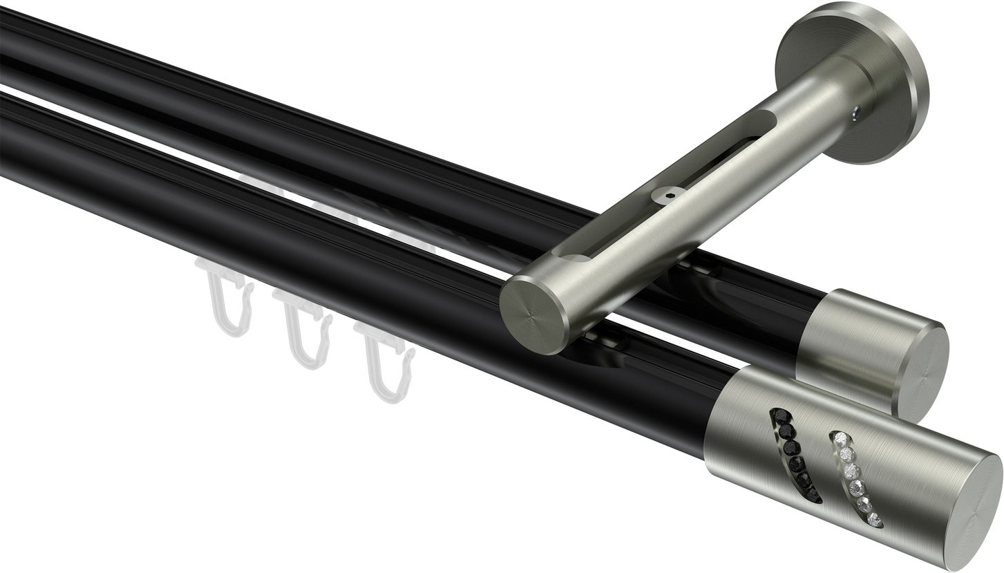 Gardinenstangen mit Innenlauf aus Aluminium / Metall in 20 mm Ø, 2-läufig, Modell SITENO - Zoena Schwarz / Edelstahl-Optik