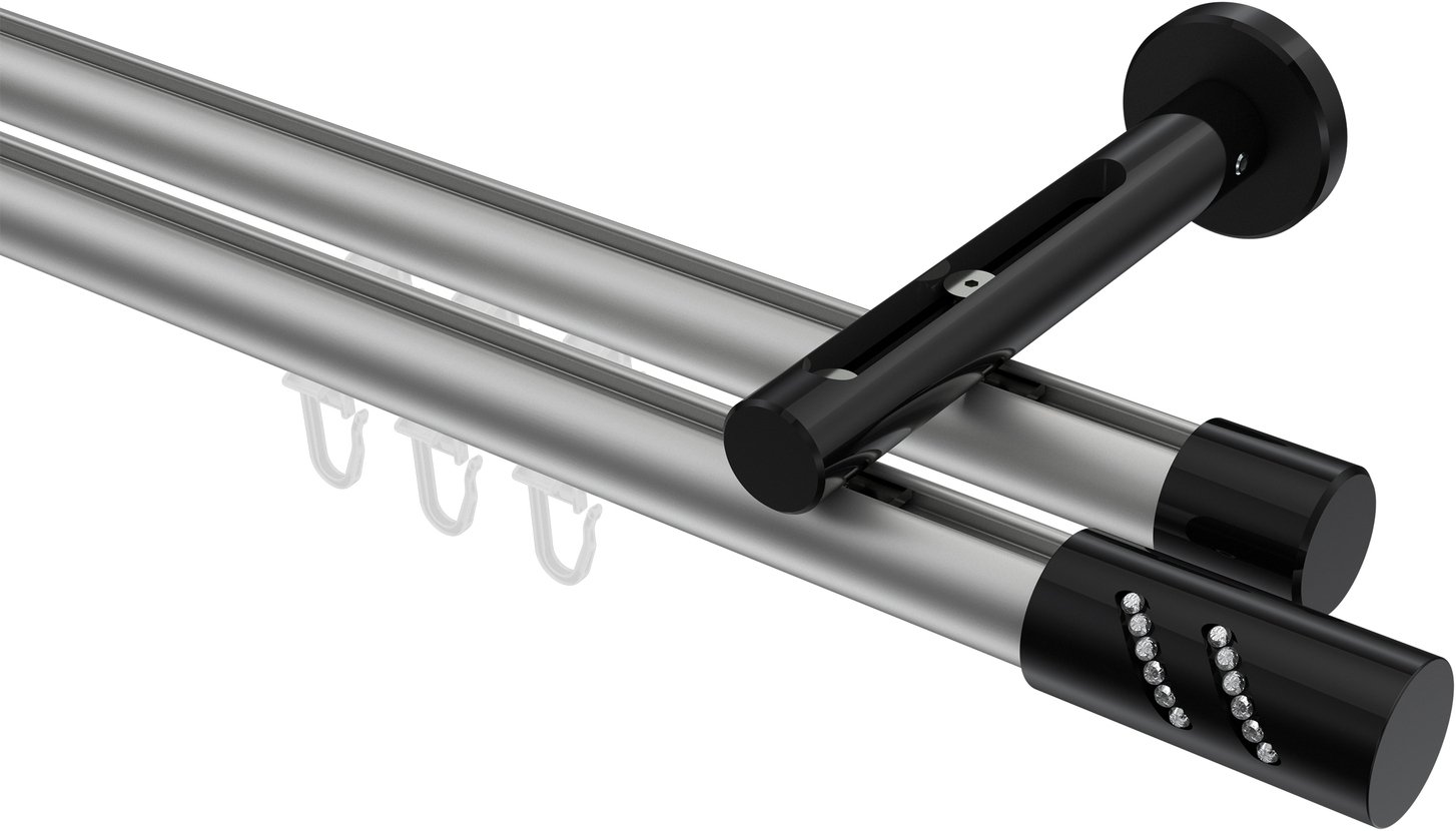 Informationen zu Innenlauf Gardinenstange Aluminium / Metall 20 mm Ø 2-läufig SITENO - Zoena Silbergrau / Schwarz: