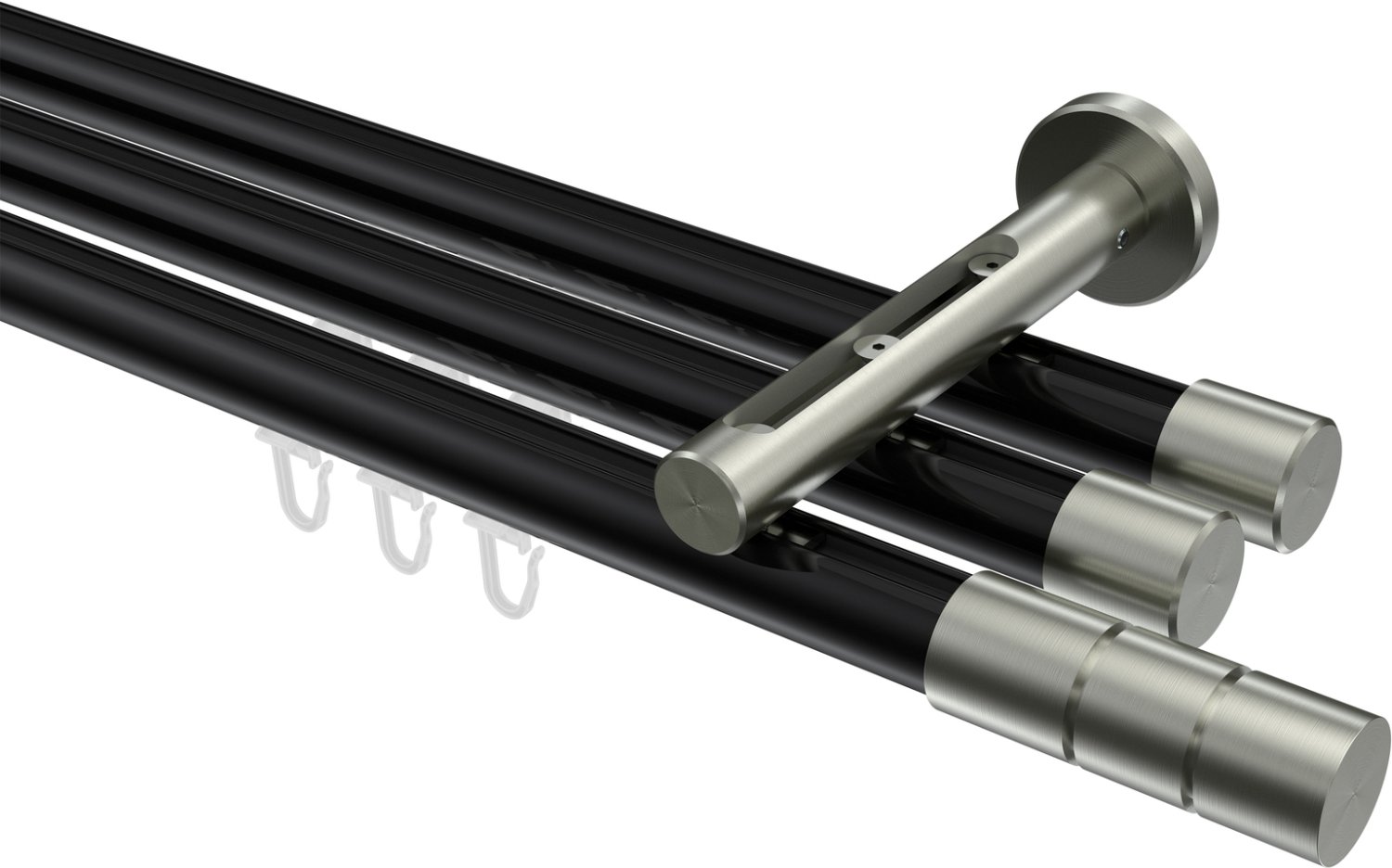 Gardinenstangen mit Innenlauf aus Aluminium / Metall in 20 mm Ø, 3-läufig, Modell SITENO - Elanto Schwarz / Edelstahl-Optik